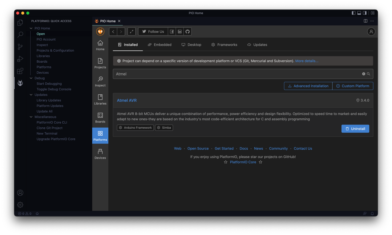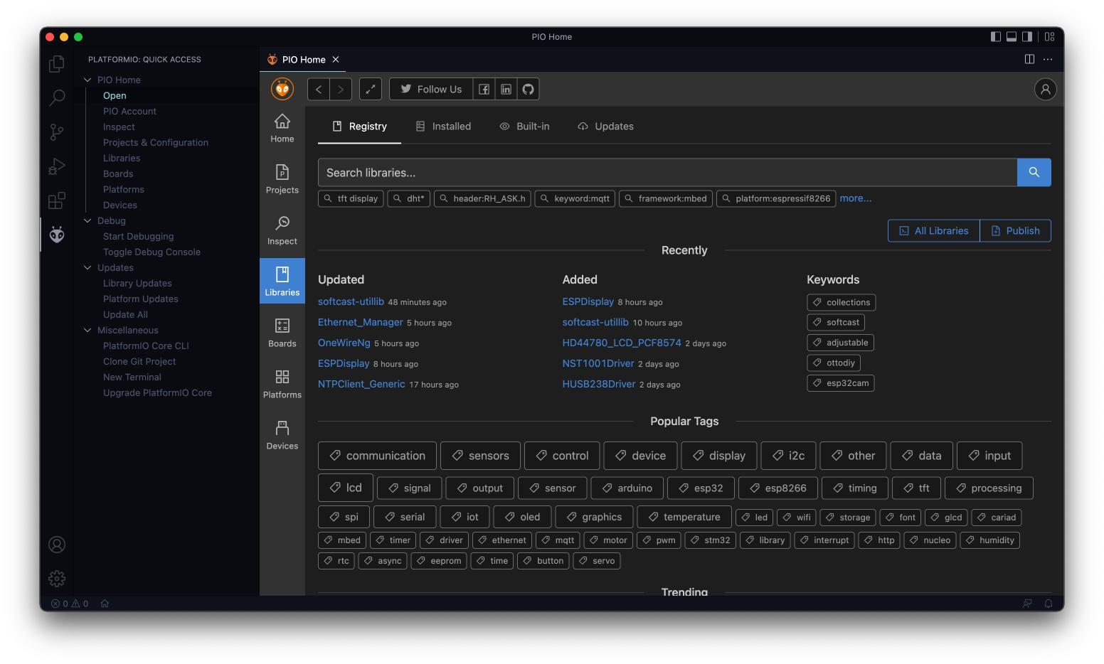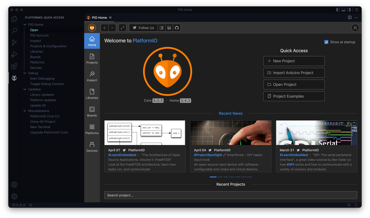 이렇게 PlatformIO IDE를 설치하고 간략하게 메뉴를 살펴보았습니다.