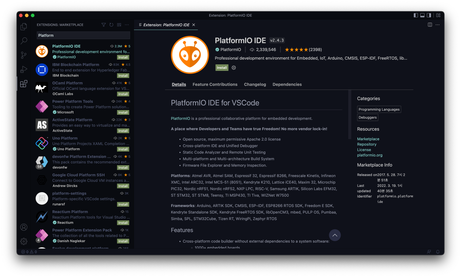 PlatformIO IDE를 설치하도록 하겠습니다!