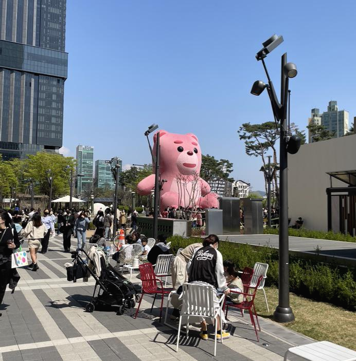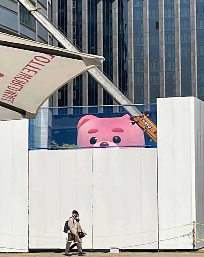 알고보니 벨리곰 맞은편에서 작업하는거였고 벨리곰 근처에는 사람들이 아주 많았습니다.