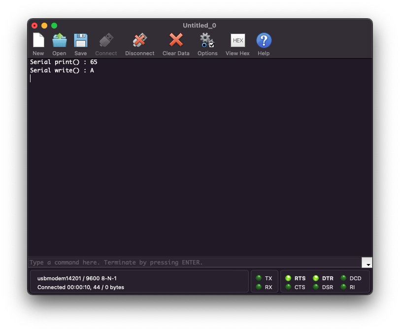 Serial.write(65);