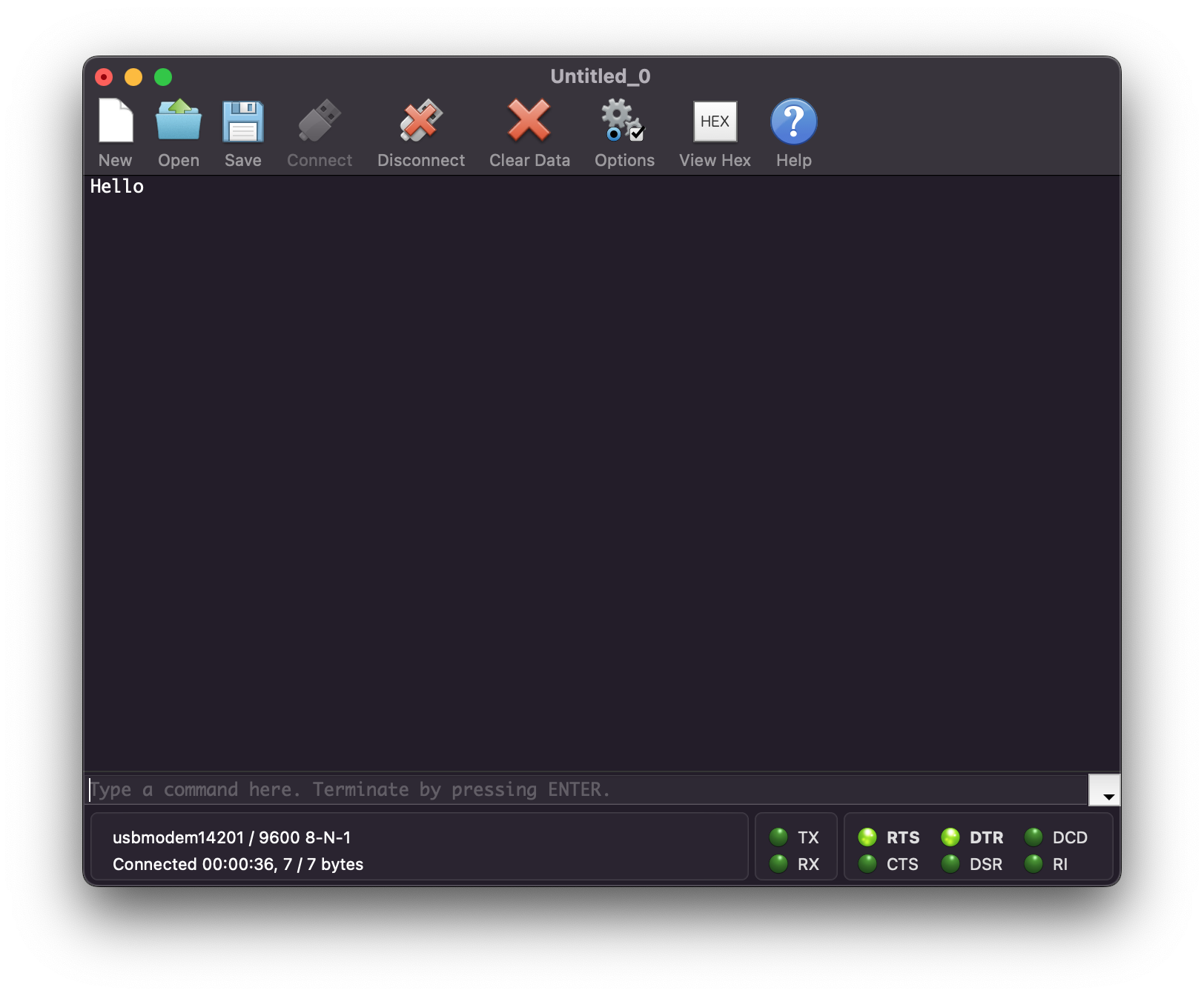저는 coolterm을 사용해서 Hello를 입력해보았습니다!