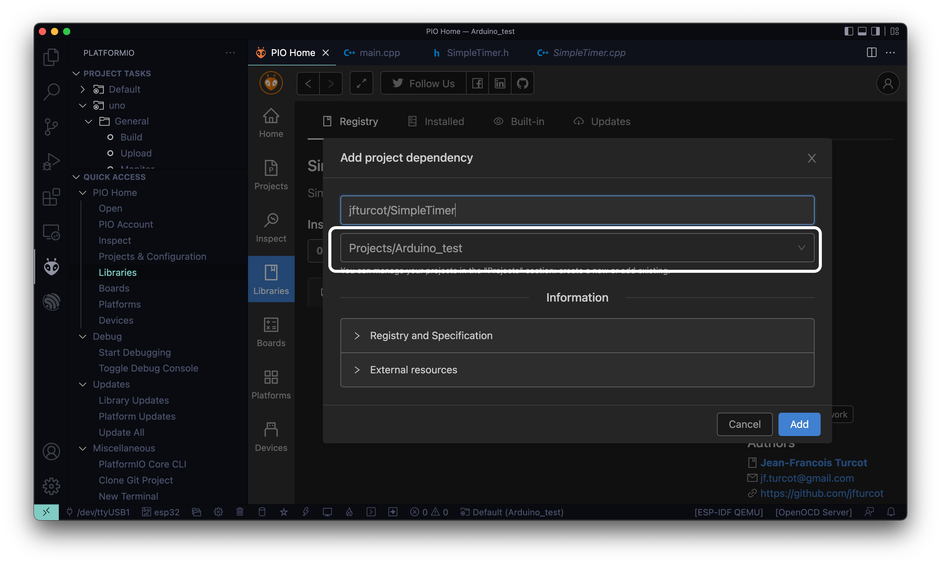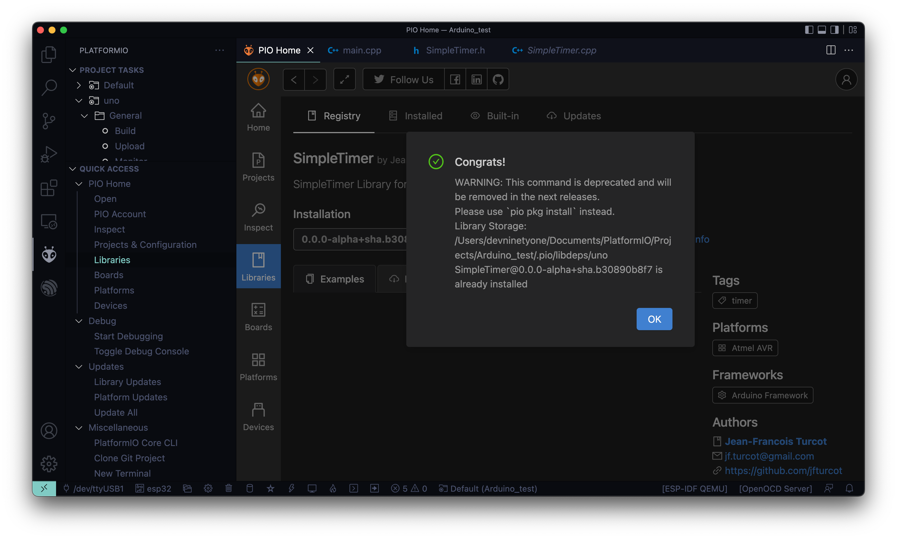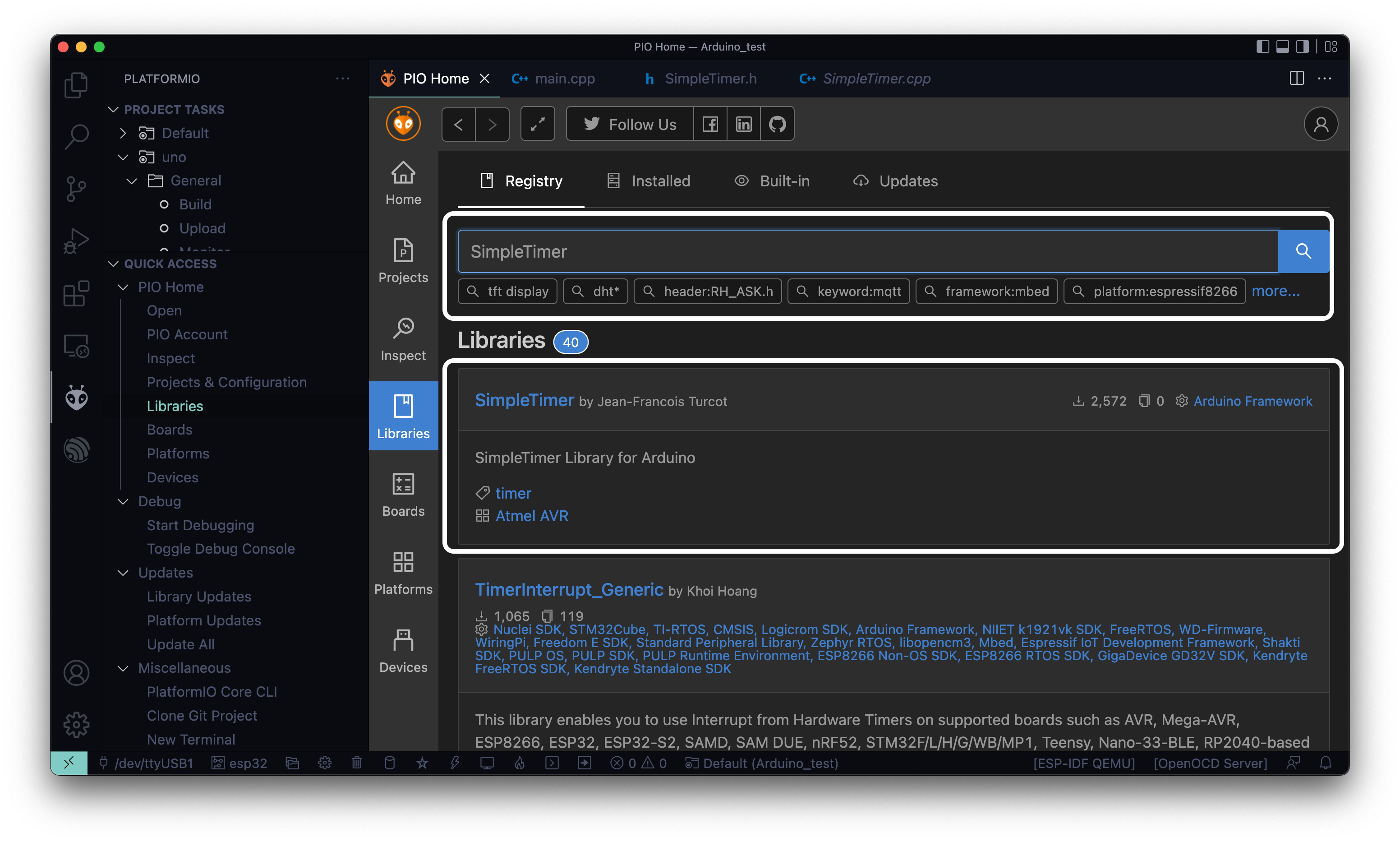 검색된 결과 중에 SimpleTimer라는 라이브러리가 나오게되는데, 이걸 클릭해보겠습니다!