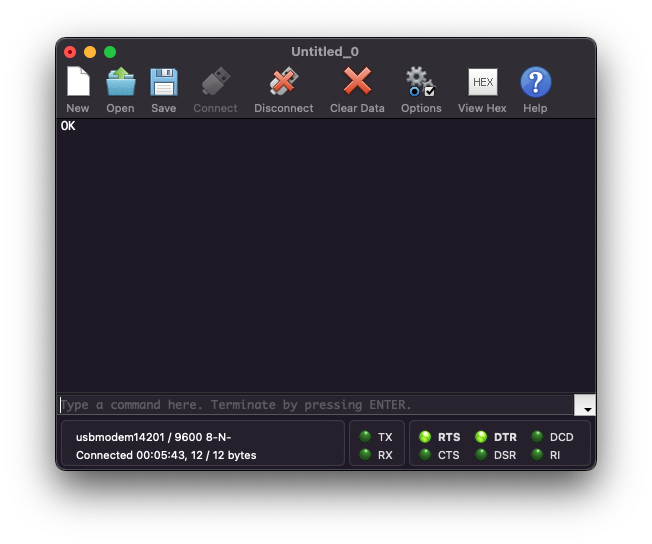 업로드를 하신 뒤에 AT 커맨드 중에 가장 기본 명령어인 AT를 입력하시게되면