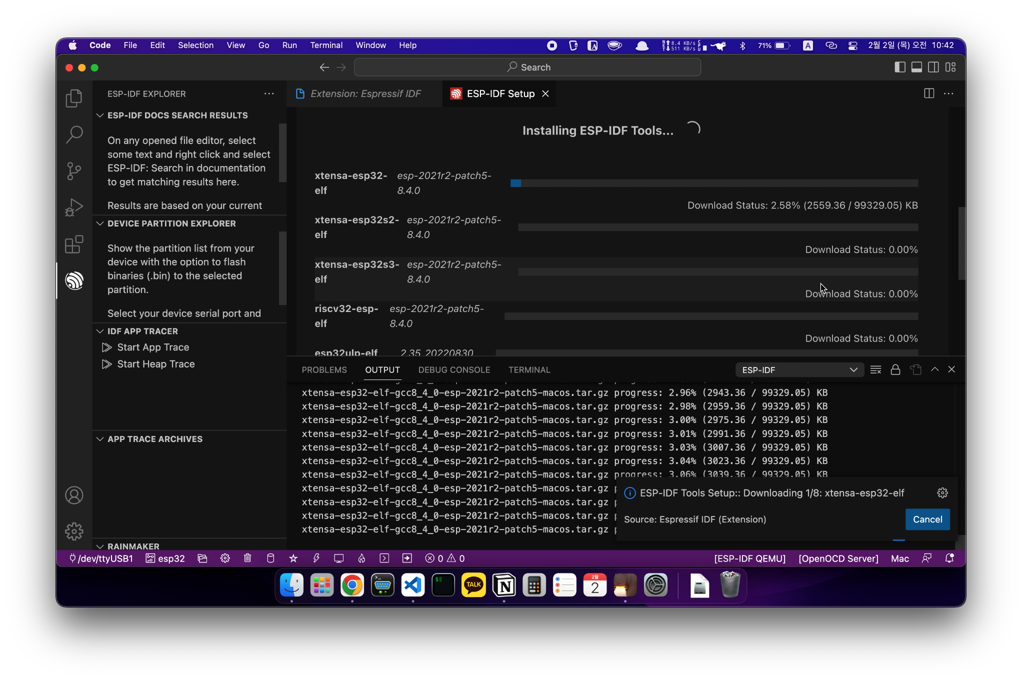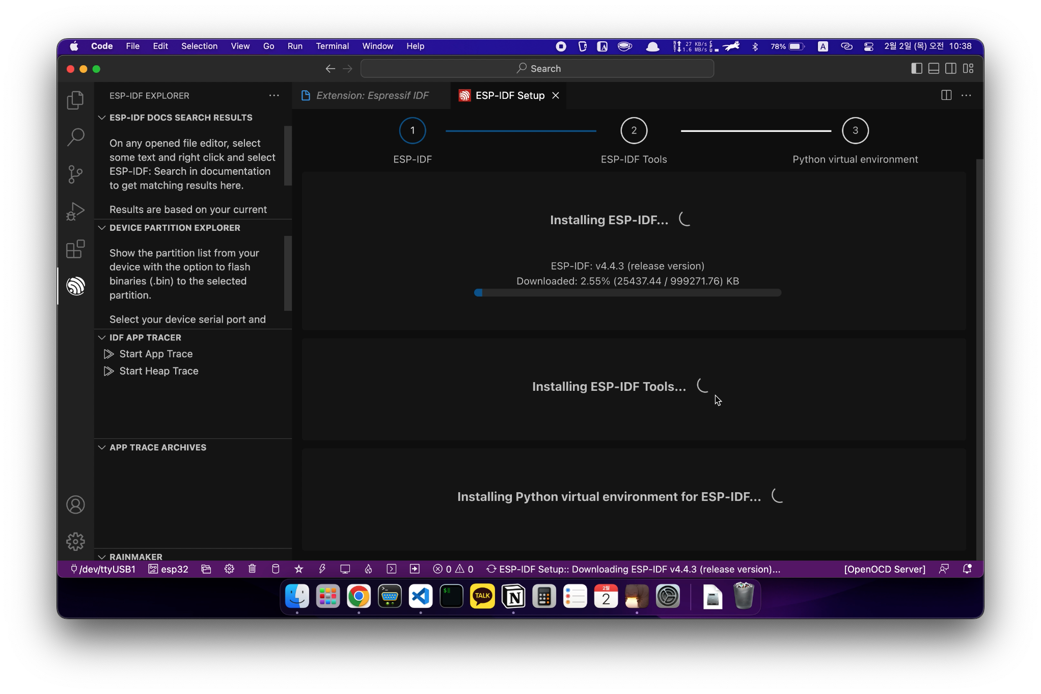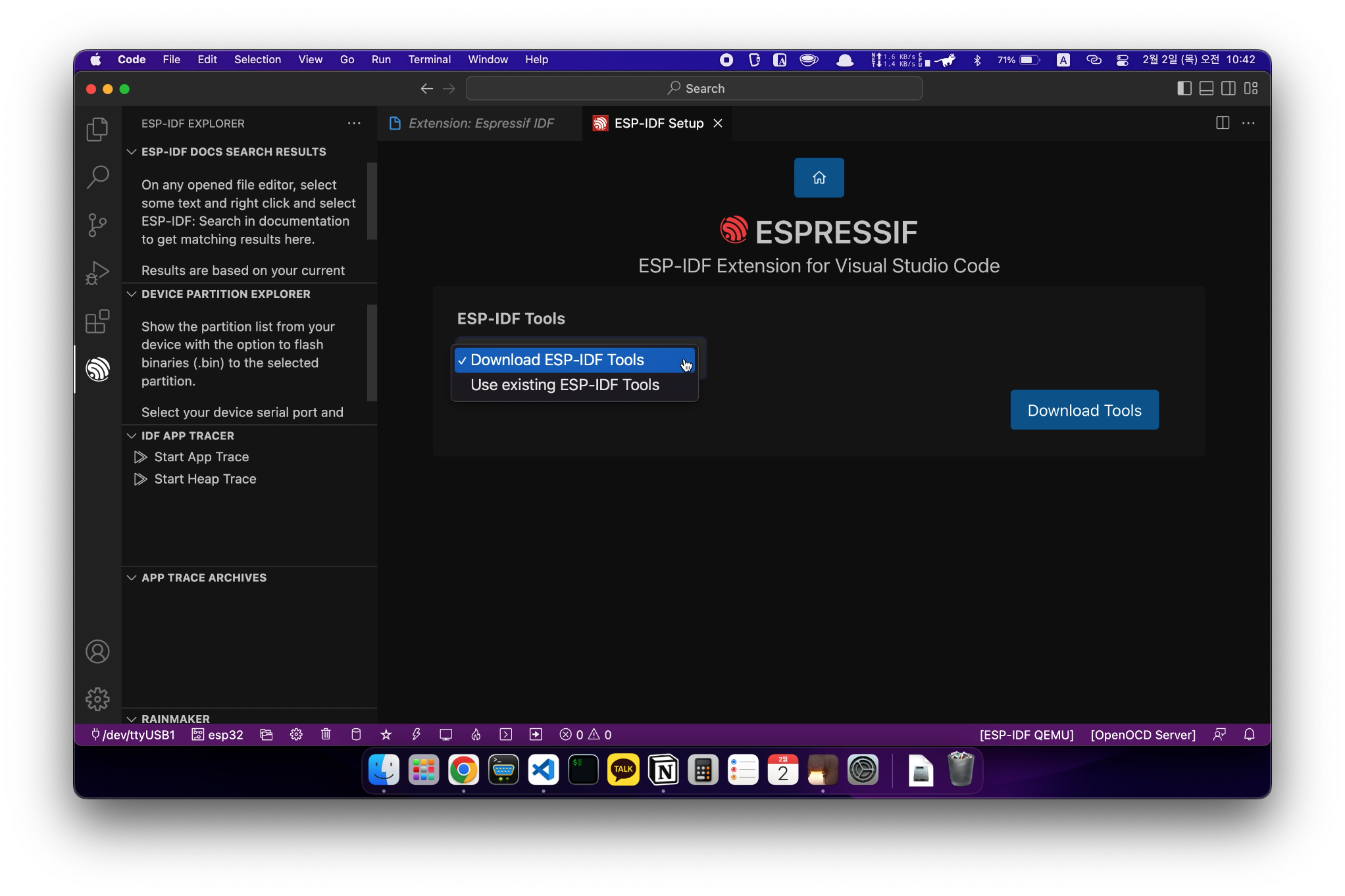 갑자기 설치 중간에 ESP-IDF Tools를 다운로드하는 부분이 나오는데요.