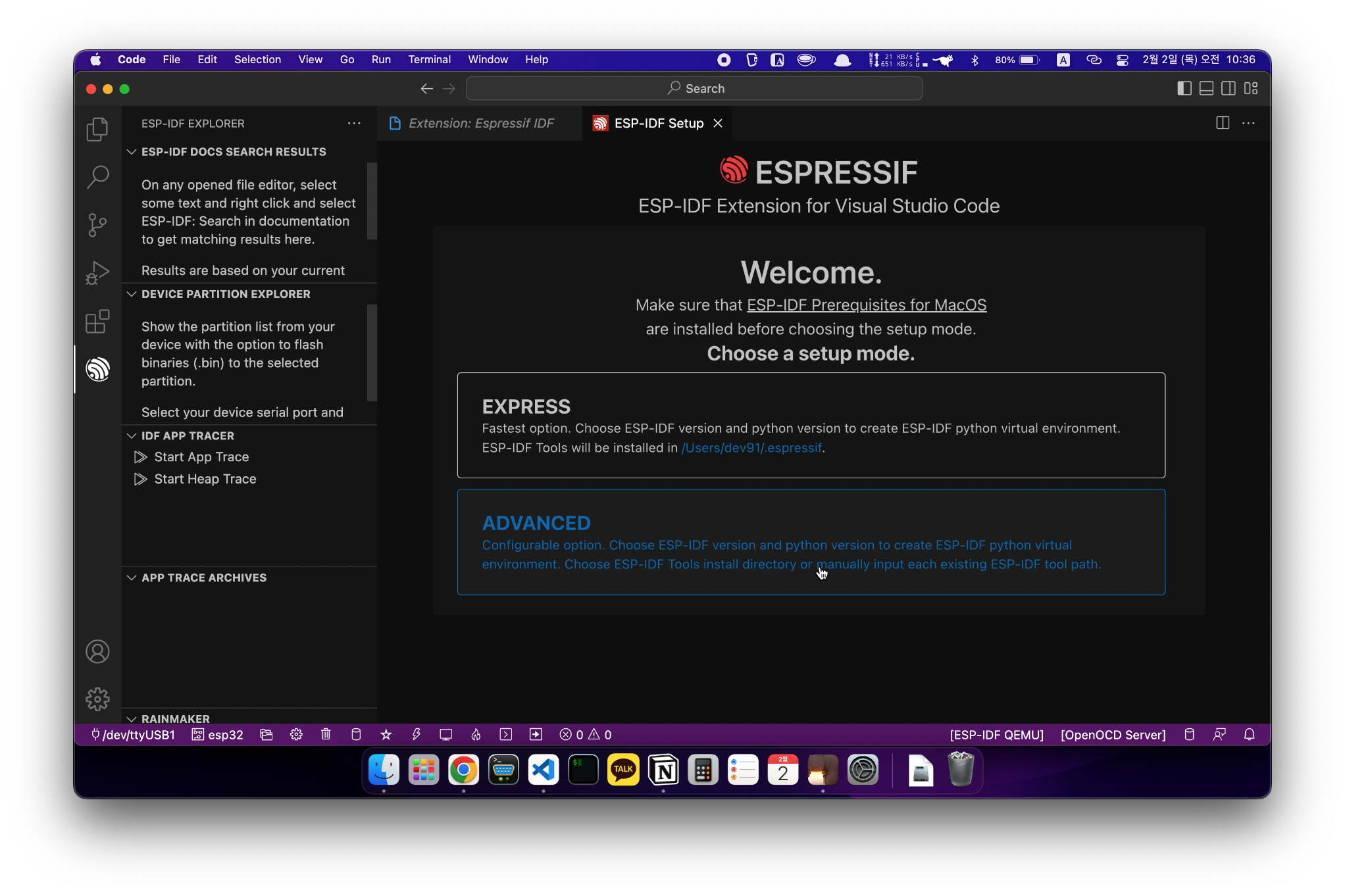그리고 ESP-IDF를 사용하기 위해 따로 개발환경을 설정해줘야 하는데요!
