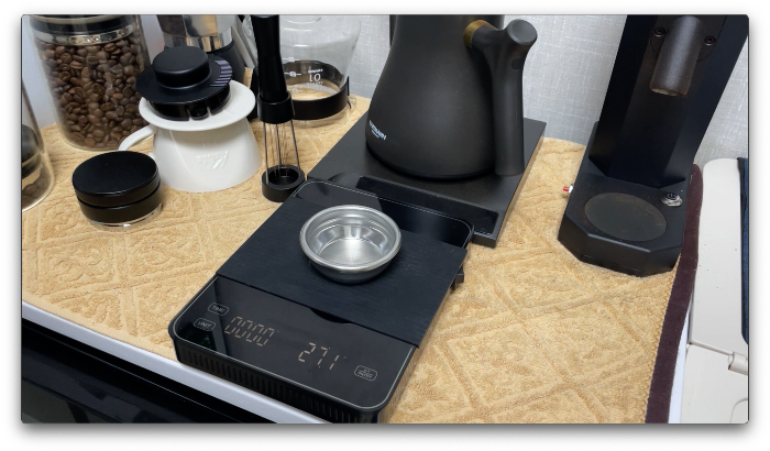 기존 스파웃 포터필터랑 같이 각각 무게를 한번 재어봤어요.