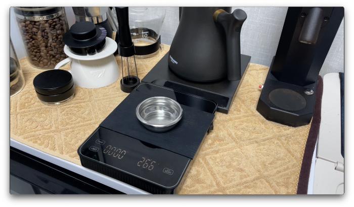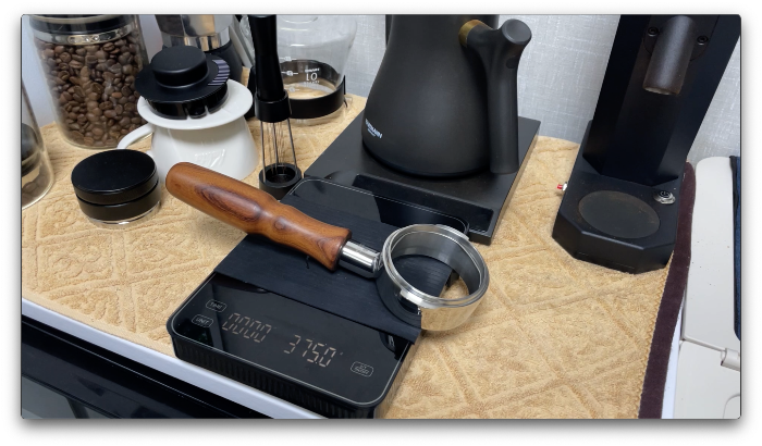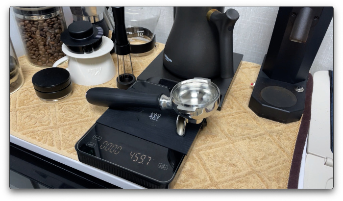 기존 스파웃 포터필터랑 같이 각각 무게를 한번 재어봤어요.