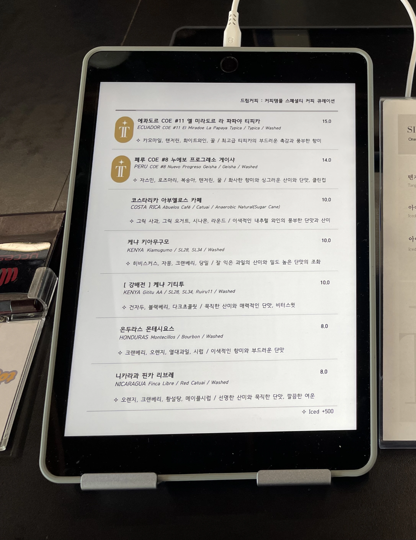 저는 여기서 슈퍼클린 에스프레소랑 아이스 텐저린 라떼를 주문했어요!