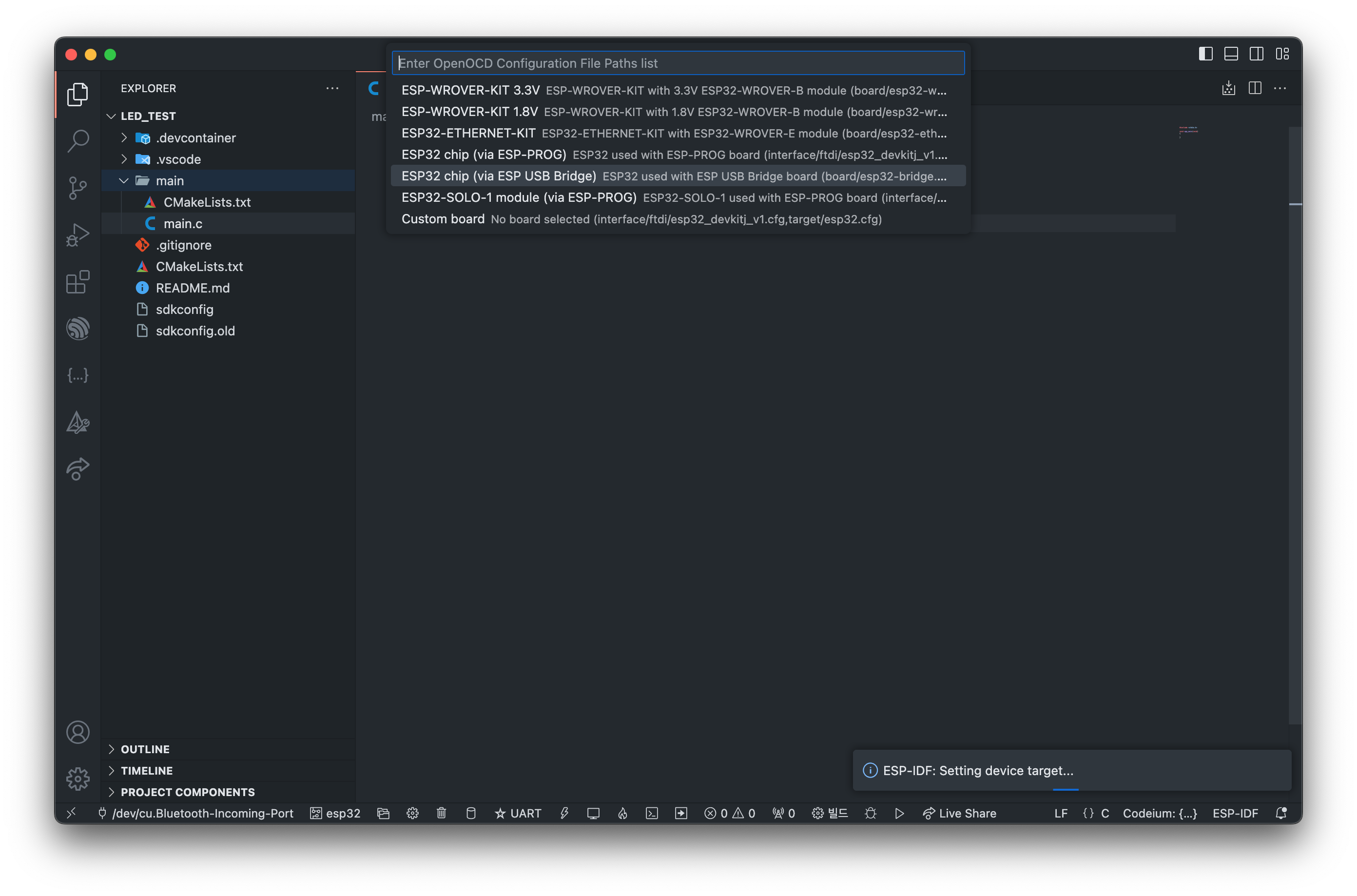 ESP-IDF Target은 보드에 맞게 세팅을 해주셔야합니다!