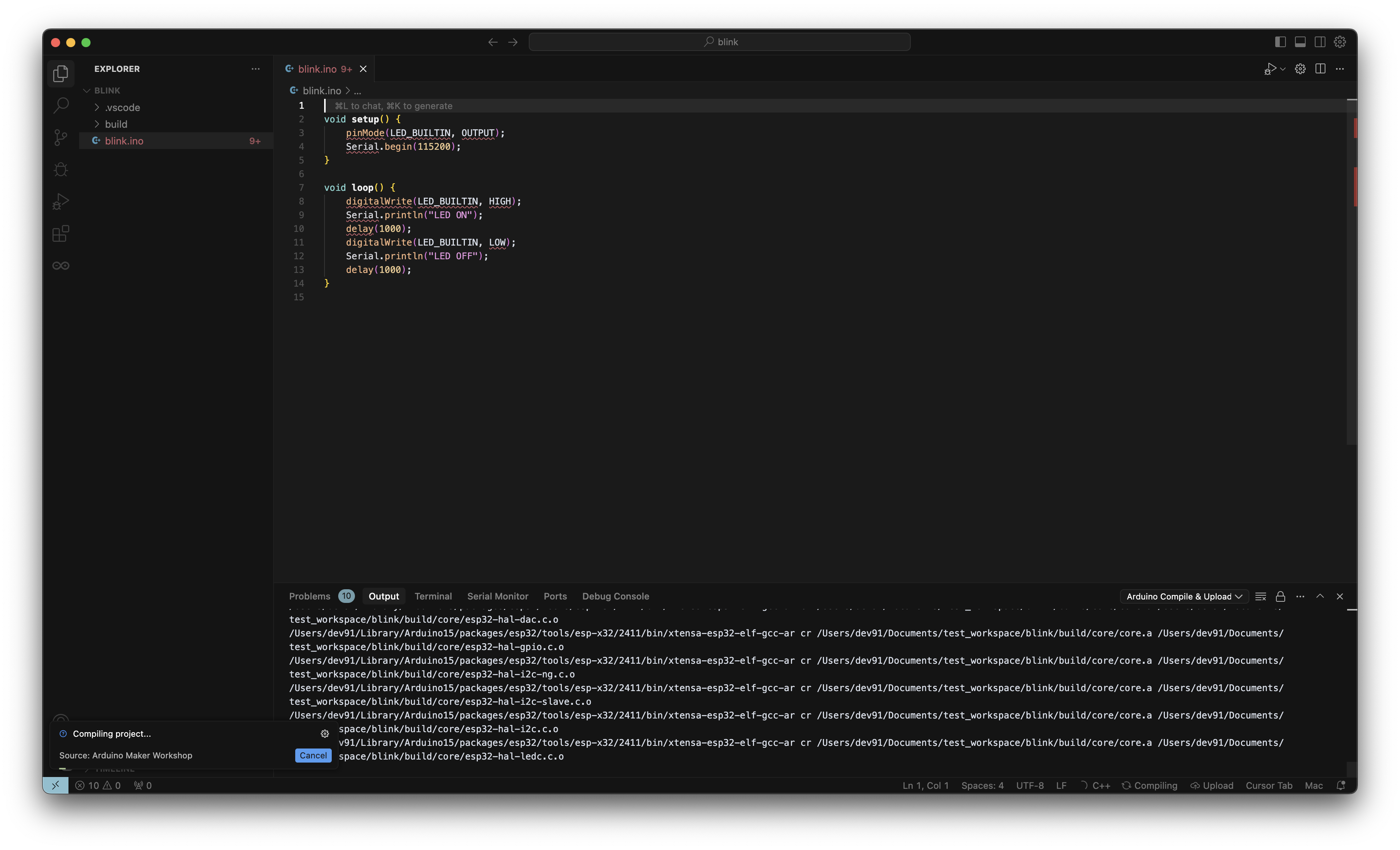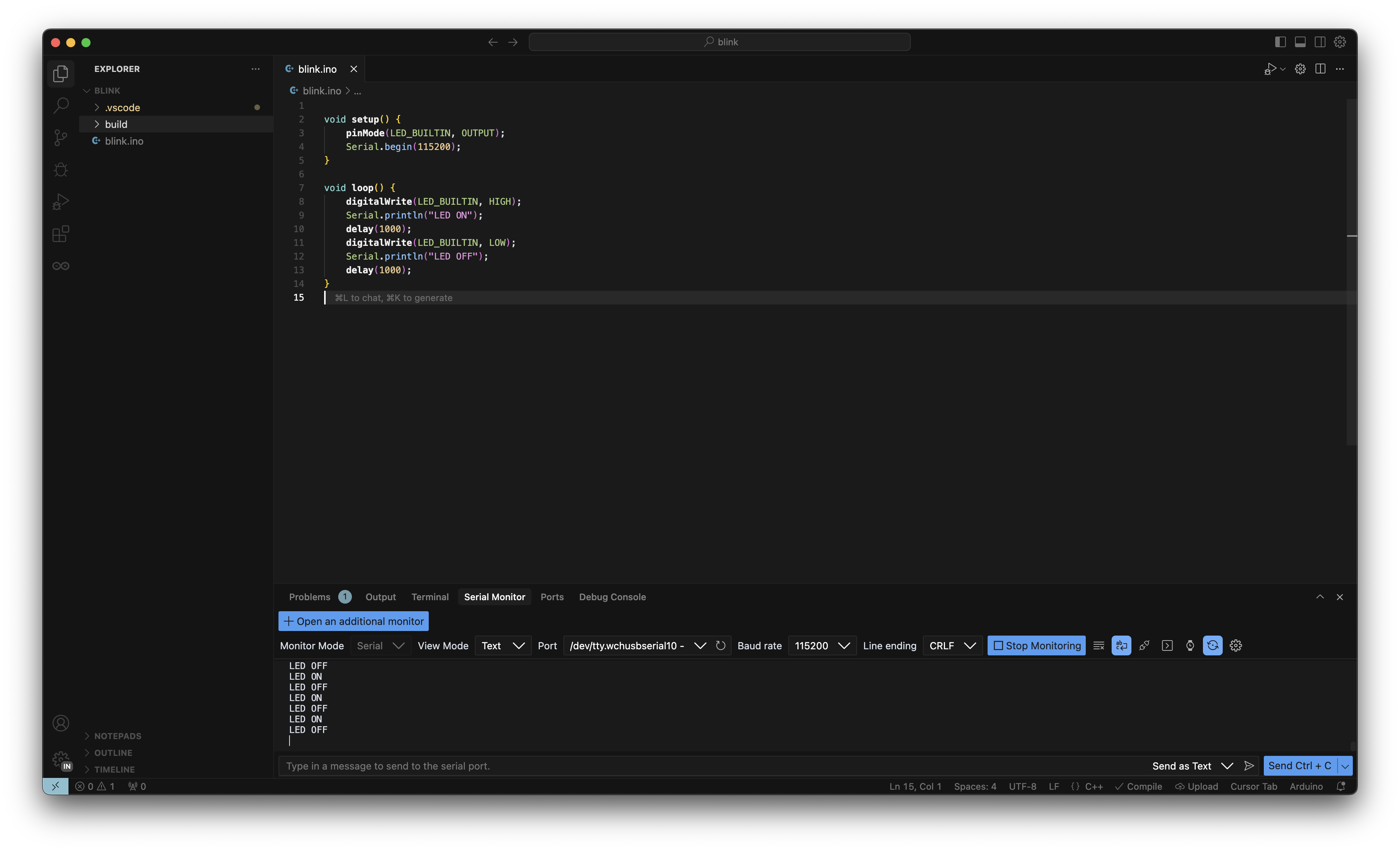 생성하시면, 해당 스케치에 해당하는 폴더로 다시 VS Code가 열리게 되는데요.