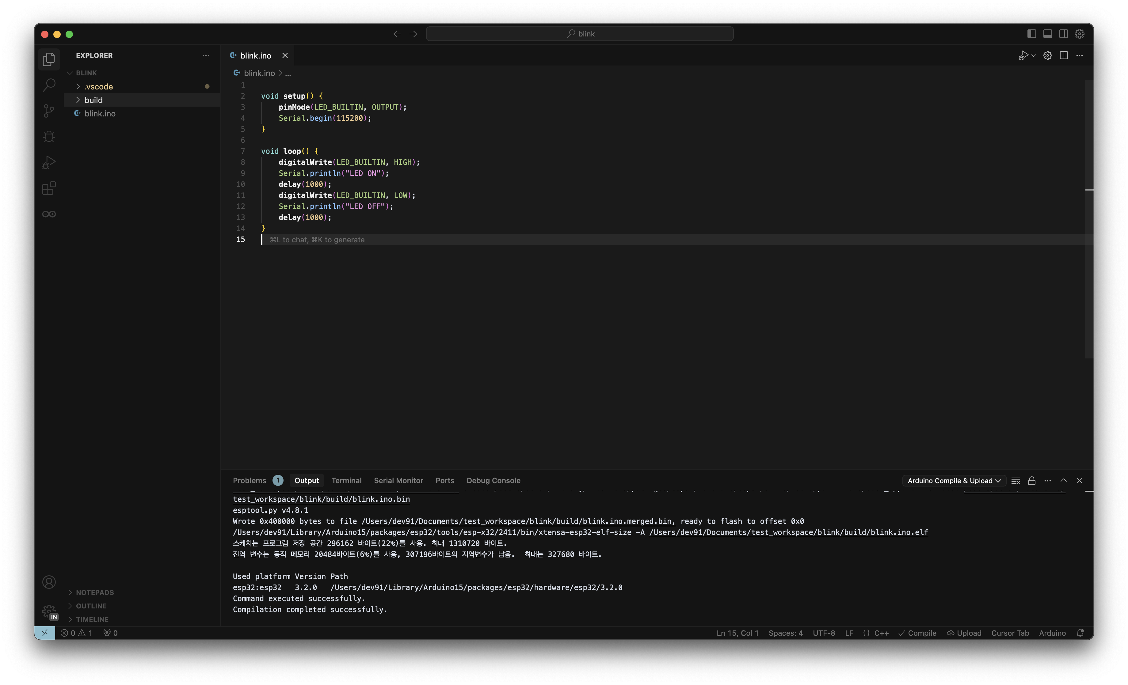 보시면 blink 폴더 안에 blink.ino가 생성 되신걸 보실 수 있습니다.