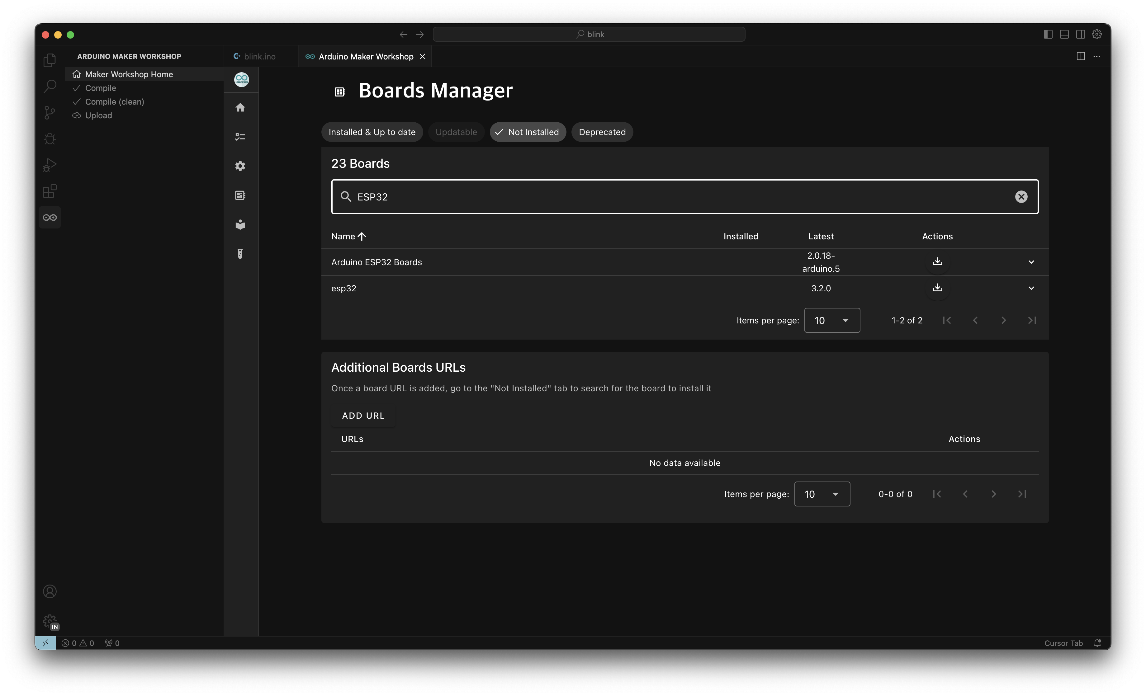 먼저 Boards Manager에서 Not Installed에서 자신이 사용할 보드를 검색해서