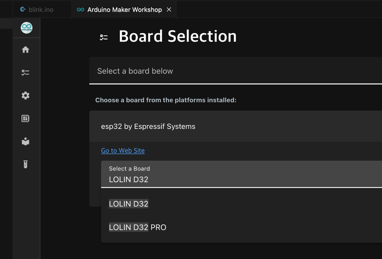 저는 LOLIN D32 보드를 검색해서 선택하겠습니다.