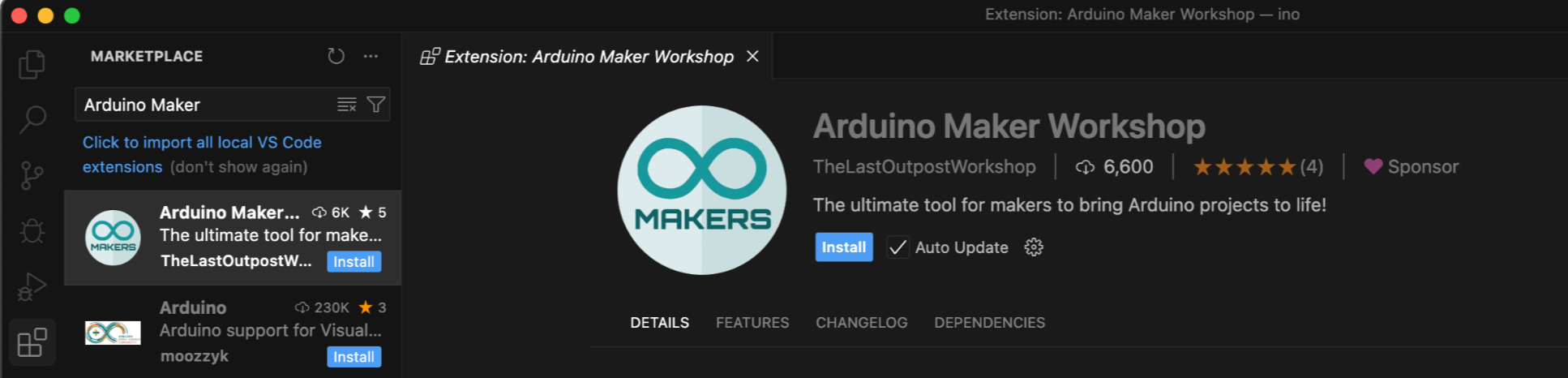 그리고 또 눈에 들어왔던 다른 플러그인은 Arduino Maker Workshop이 였는데요.