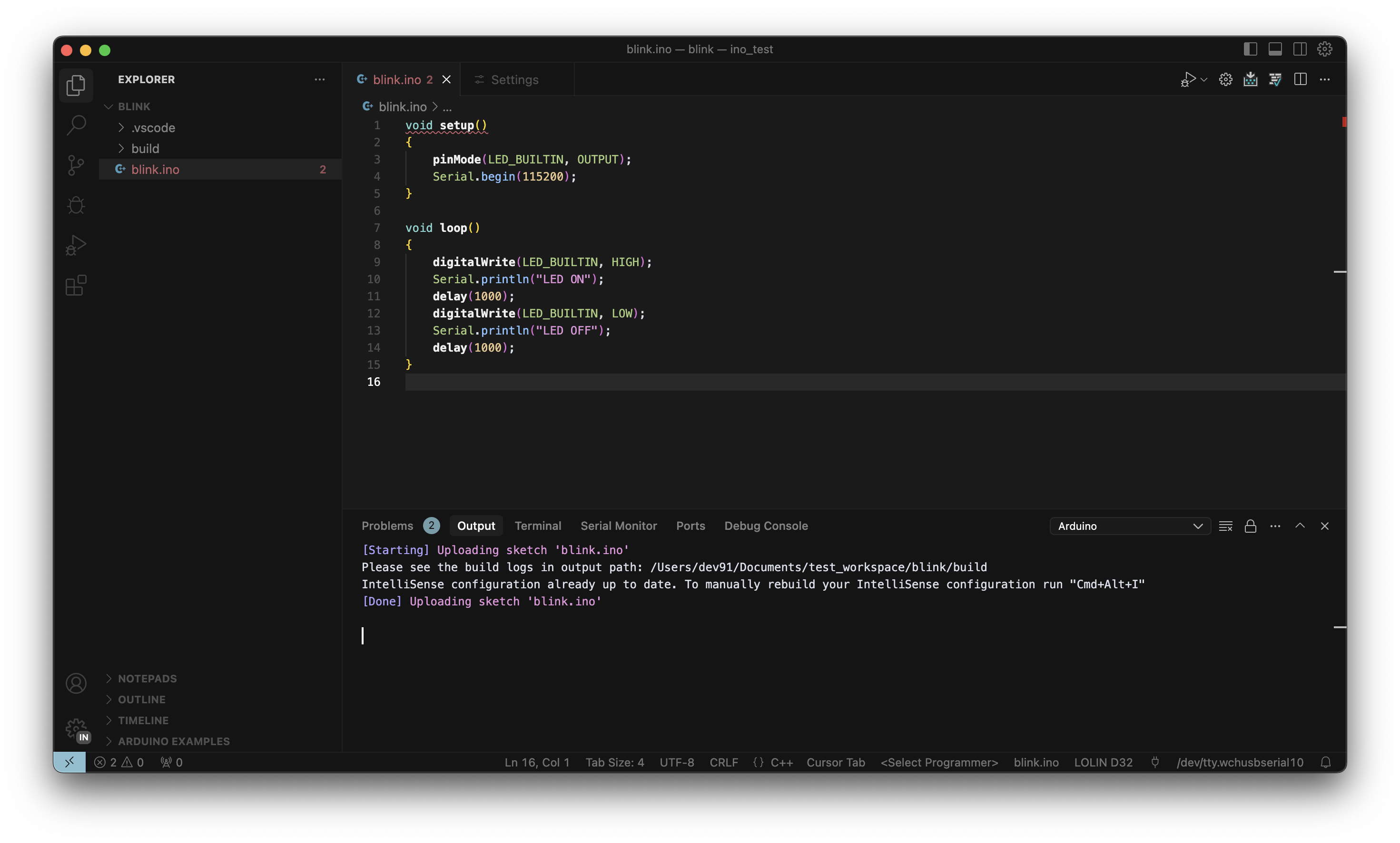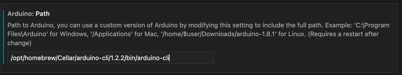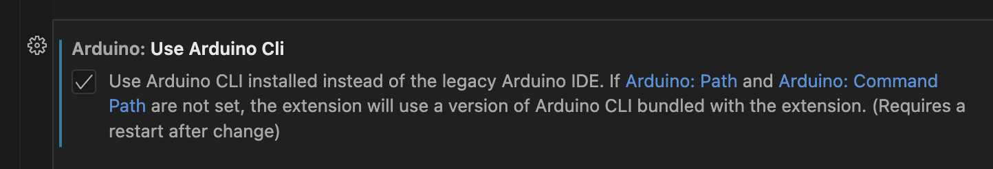 경로를 지정하고 Arduino: Use Arduino Cli 설정을 체크해줍니다