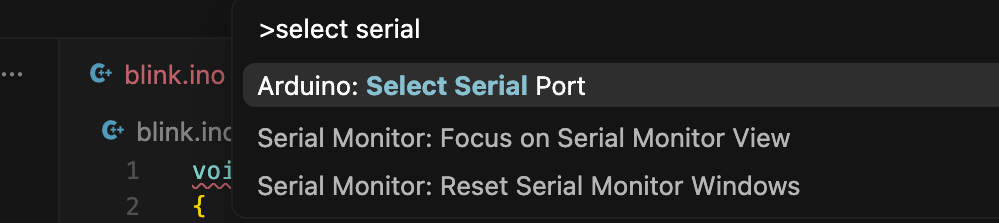 포트는 파레트에서 Arduino: Select serial port를 선택하시고,