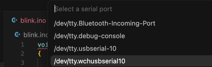 저는 보드의 포트가 /dev/tty.wchusbserial10 에 연결되있네요!