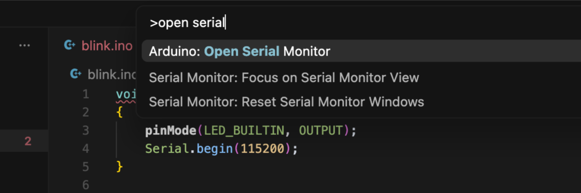 파레트에서 Arduino: Open serial monitor를 선택하고,