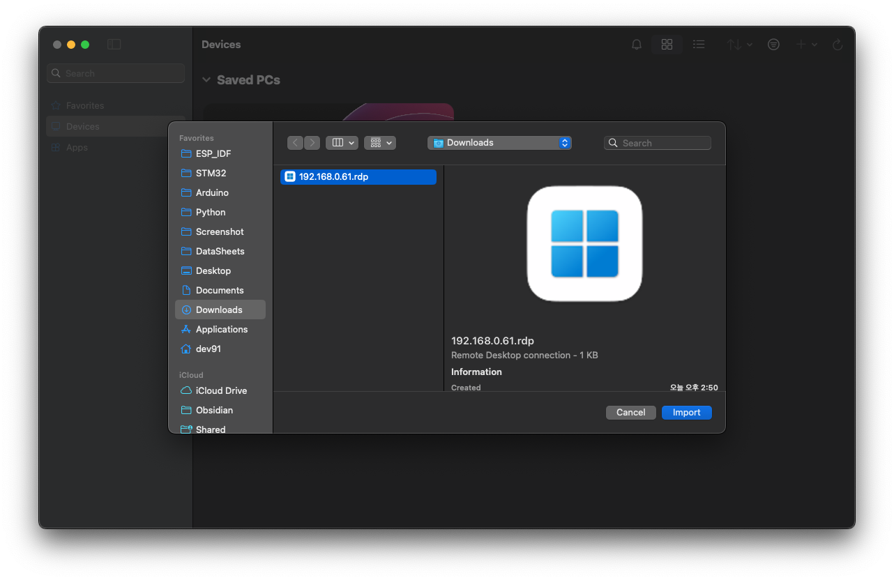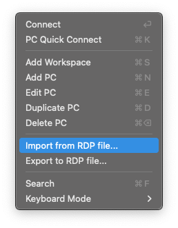 Export 하게되면 .rdp 확장자를 가진 파일을 내보냅니다!