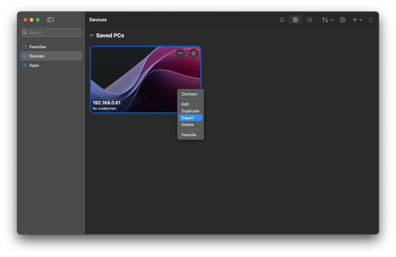 먼저 접속할 PC를 우클릭해서 Export를 해줍니다!