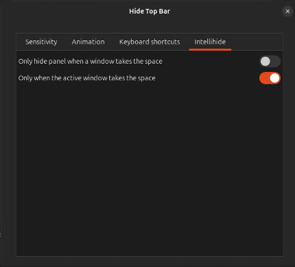 Intellihide 탭으로 이동하셔서 Only hide panel when a window takes the space 체크를 해제해주세요!