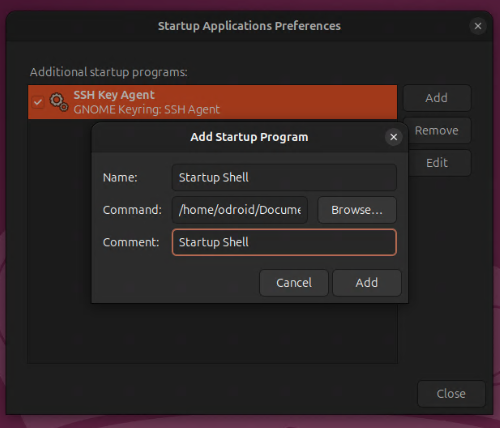 그리고 생성한 쉘 스크립트를 Startup Applications에 추가해줍니다!
